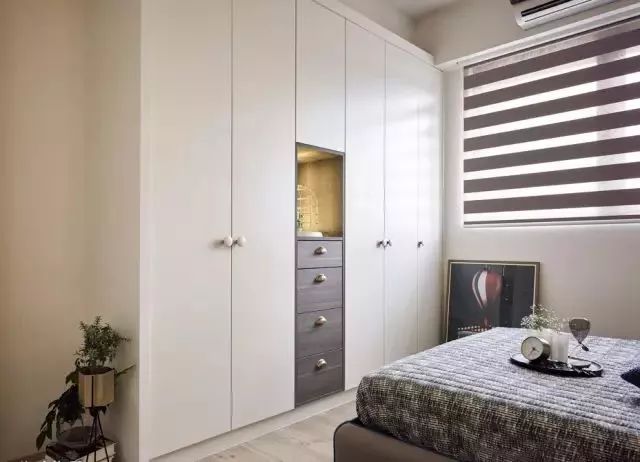 卧室有大量的衣物需要储存,可以利用卧室里某一面墙较大的,把它利用起来装成一整面的衣帽间,甚至可以通过开放式的挂钩等形式,来实现自己梦寐以求的衣帽间小梦想。